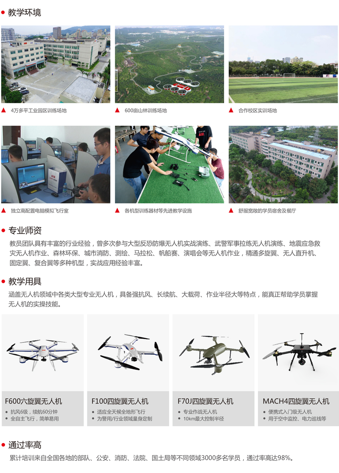 依托着公司雄厚的優勢資源和高技術水平,AEE一電航空自2012年開(kāi)始爲公安、武警、消防和軍方等部門提供專業的無人機航空知識和飛行技能(néng)培訓,并于2014年3月正式成(chéng)立AEE一電航空學(xué)院。目前已在深圳、廣州、佛山、肇慶、海南、南京、内蒙等地設有培訓基地。