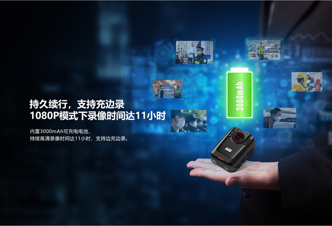 内置3000mAh大容量電池,1080P模式下錄像時間達10小時;