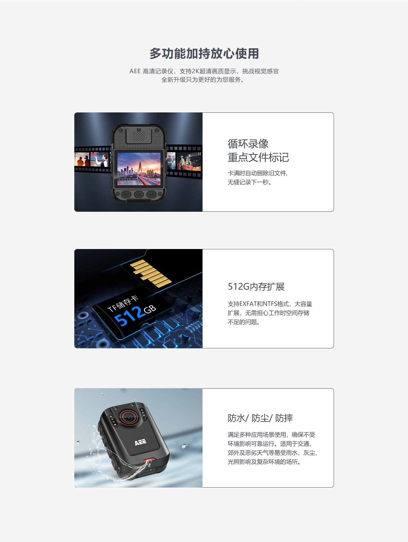 您可以將(jiāng)這(zhè)款小巧便攜的記錄儀放在您的肩夾上或者是挂在胸前,把它帶到任何地方自由使用;