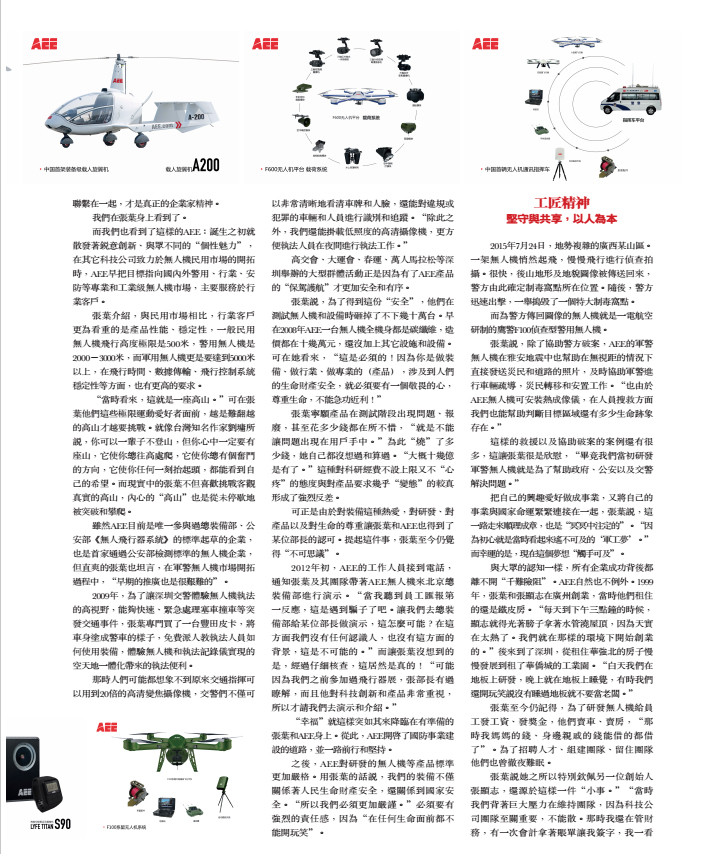 裝備級無人機、載人旋翼機⋯⋯就像上足發條的機械,AEE沿著創始人的夢想不停前行著。