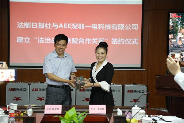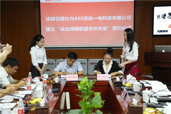 随後(hòu),法制日報領導一行在三樓開(kāi)展座談,進(jìn)行戰略合作協議簽署會議,法制日報領導詳細了解了AEE産品的應用領域、過(guò)往案例以及未來的發(fā)展規劃,并重點了解現有AEE裝備級無人機系統的實戰應用。