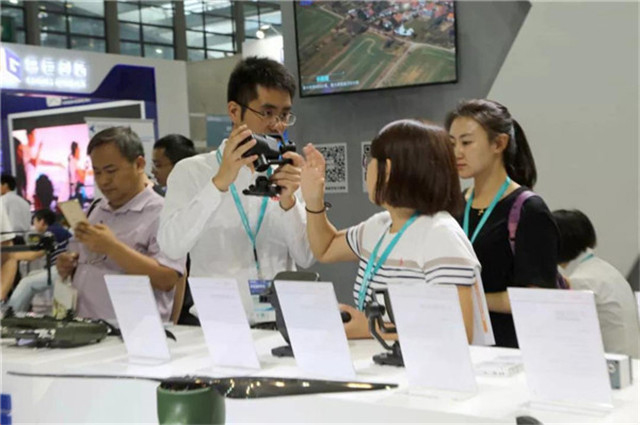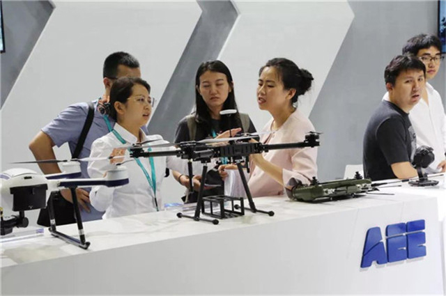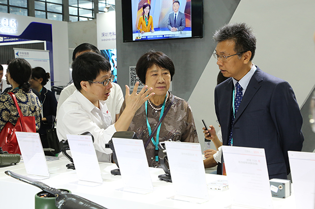 (中國(guó)電子信息行業聯合會常務副會長(cháng)曲維枝女士一行在展會現場了解AEE一電航空産品情況)