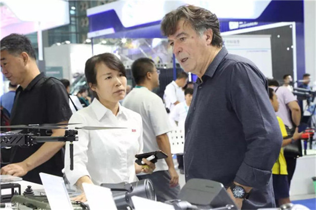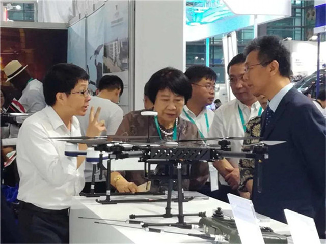 (中國(guó)電子信息行業聯合會常務副會長(cháng)曲維枝女士一行在展會現場了解AEE一電航空産品情況)