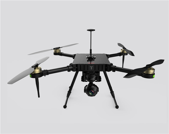 F600多任務型警用無人機是一款集成(chéng)式可垂直起(qǐ)降、定點懸停的大型六旋翼多功能(néng)無人機系統平台。采用一鍵快拆結構,具備大載荷長(cháng)續航抗風性能(néng)好(hǎo)的飛行性能(néng),強勁的飛行動力系統,精準的定位系統和懸停能(néng)力。搭載遙控器、地面(miàn)控制站、自動跟蹤天線及紅外機載、微光機載、喊話器、有害氣體偵測器、探照燈等挂載設備,具備超強的拓展應用場景,可全天候作戰。
