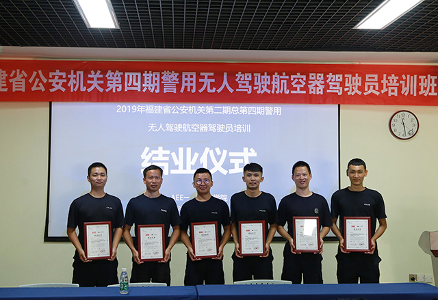 (圖爲:第四期福建省公安機關警用無人機培訓班頒發(fā)結業證書)