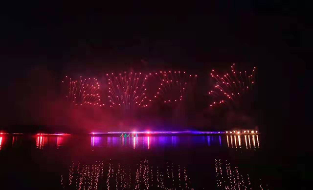 随着倒計時開(kāi)始,晚8時整,煙花騰空,人才公園周邊樓宇齊齊亮燈,一束激光點亮晚會現場。随着序曲《我和我的祖國(guó)》的優美樂聲,焰火晚會拉開(kāi)了序幕,一簇簇絢爛的煙花在天空綻放,點亮了璀璨的夜空!
