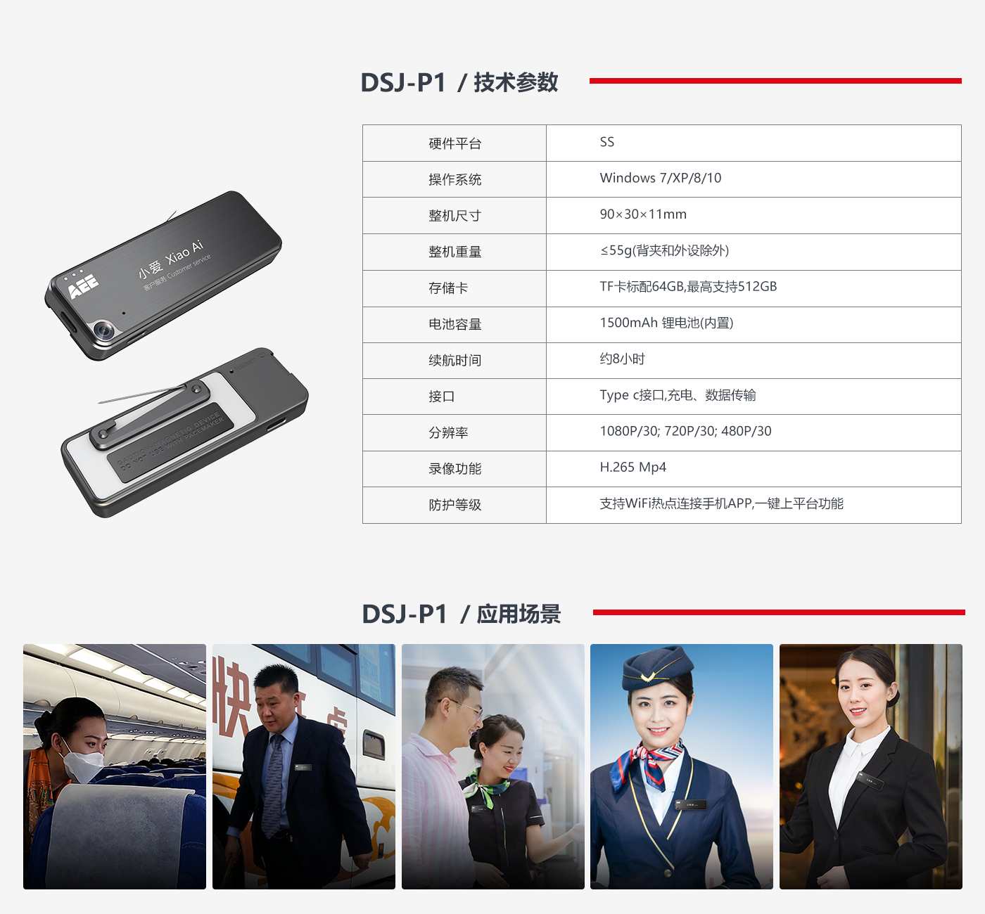 産品輕至55g,小巧精緻不突兀,佩戴舒适,記錄、服務二合一,提高服務質量;